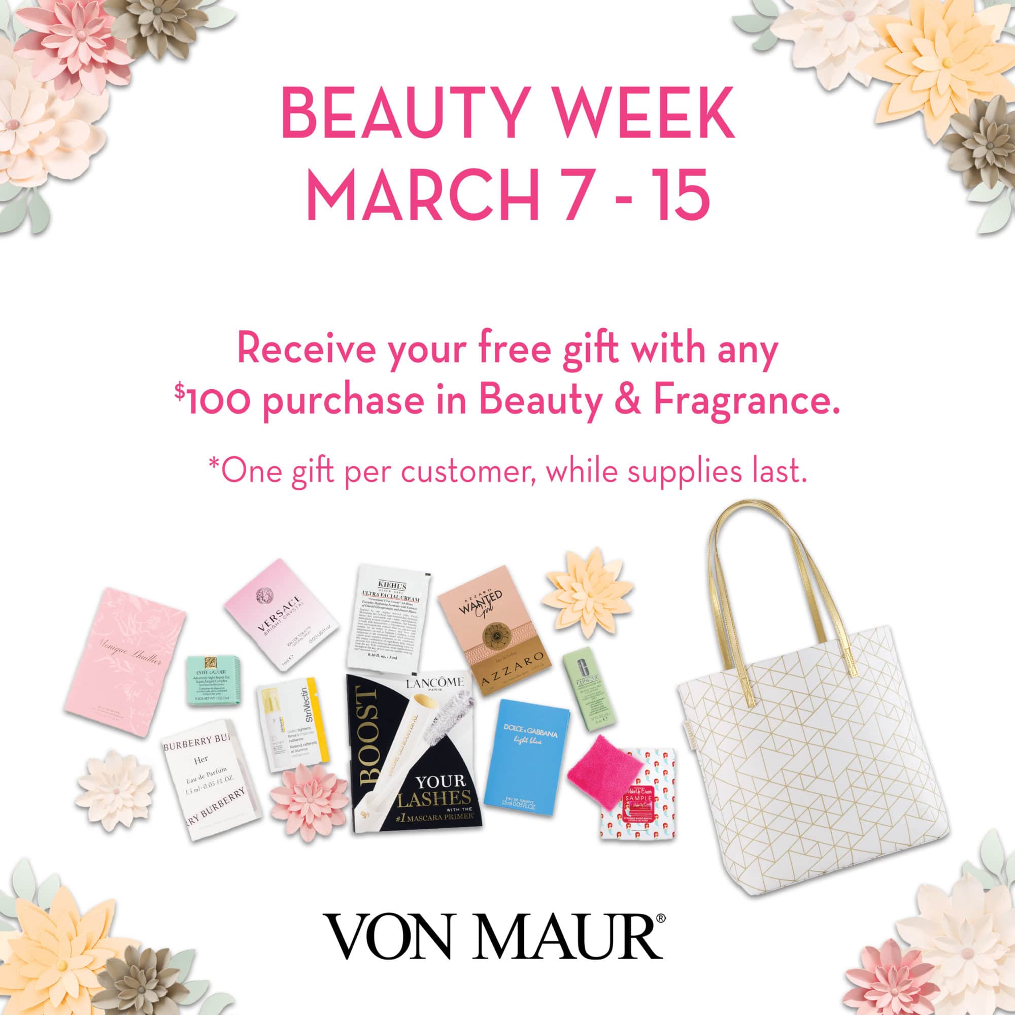 Receive your free gift with any $100 purchase in beauty and fragrance. One gift per customer, while supplies last.